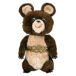 | 1980年莫斯科夏季奧運會吉祥物Misha 1980年莫斯科夏季奧運會吉祥物是一隻名叫Misha的俄羅斯熊,由著名的兒童書籍插圖畫家維克多 切茲可夫設計。Misha在1977年12月19日第一次展現在人們的面前,在莫斯科奧運會期間被用在諸如毛絨玩具、瓷器、塑膠製品、玻璃器皿等上百種紀念品上,而且還被印製成了郵票。 | |